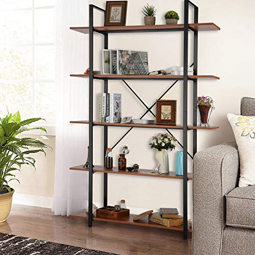 Specification: Himimi Bibliothèque Étagère à Livres étagère d’angle étagère en Design Industriel étagère à 5 Compartiments pour Bureau, Salon, Chambre, 120 x 30 x 180 cm