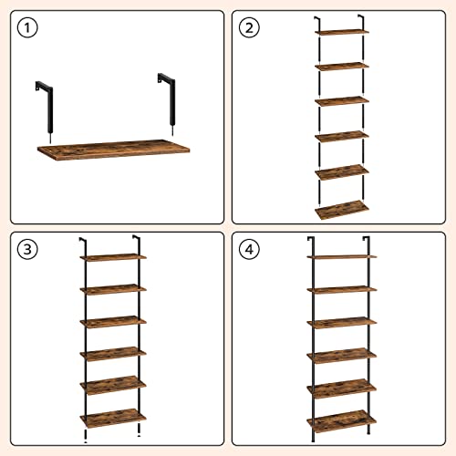 HOOBRO DIY Étagère Échelle, Bibliothèque 6 Niveaux, Étagères murales industrielles, Organisateur de Présentoirs et d’Étagères de Rangement, pour Bureaux à Domicile, Salons EBF65CJ01