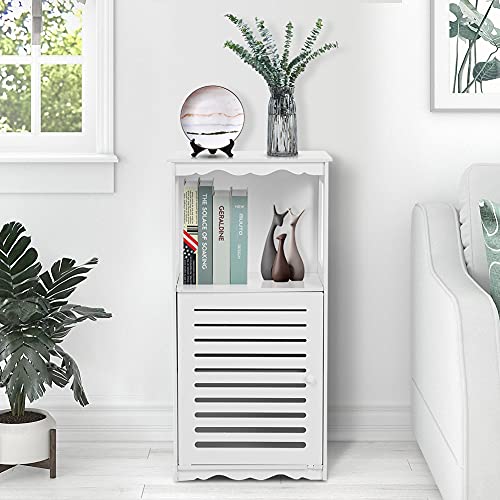 Meuble de Salle de Bain Blanc Armoire de Salle de Bain sur Pied Meuble d’Angle Petite Moderne avec 1 Compartiment et 1 Portes Persiennes pour Salon Chambre Couloir, 38 x 28 x 80 cm
