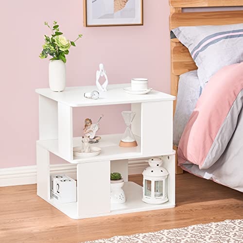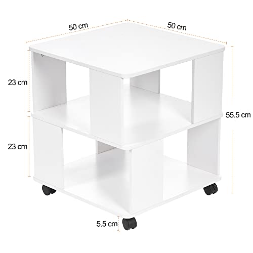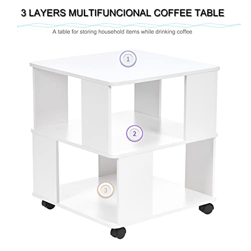 ANWBROAD Table Basse avec 3 Niveaux de Rangement, Table Basse de Salon, Table d’appoint de Balcon avec 4 roulettes, Panneau de Particules écologique de E1, Blanc 50 x 50 x 55.5cm LCT001W